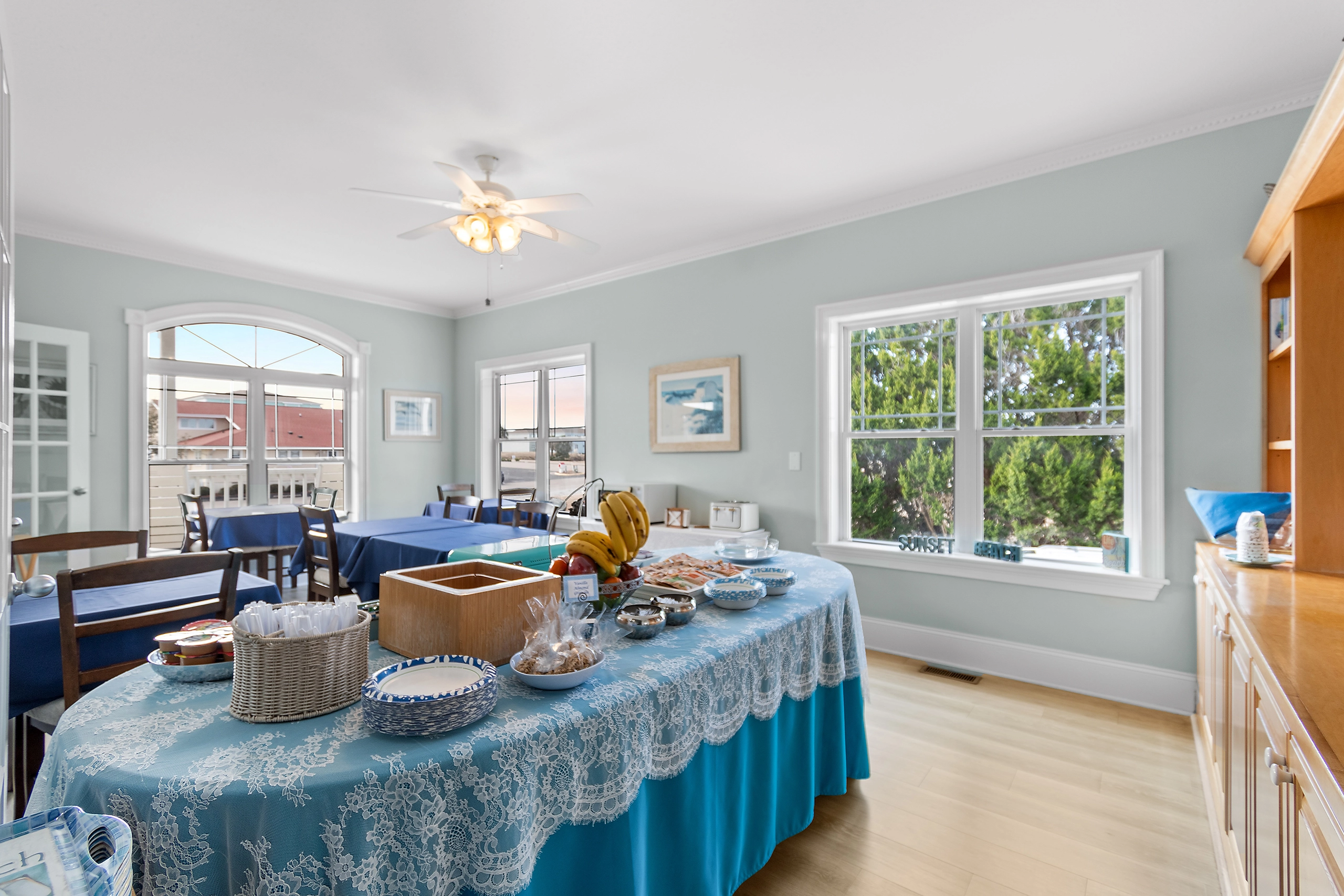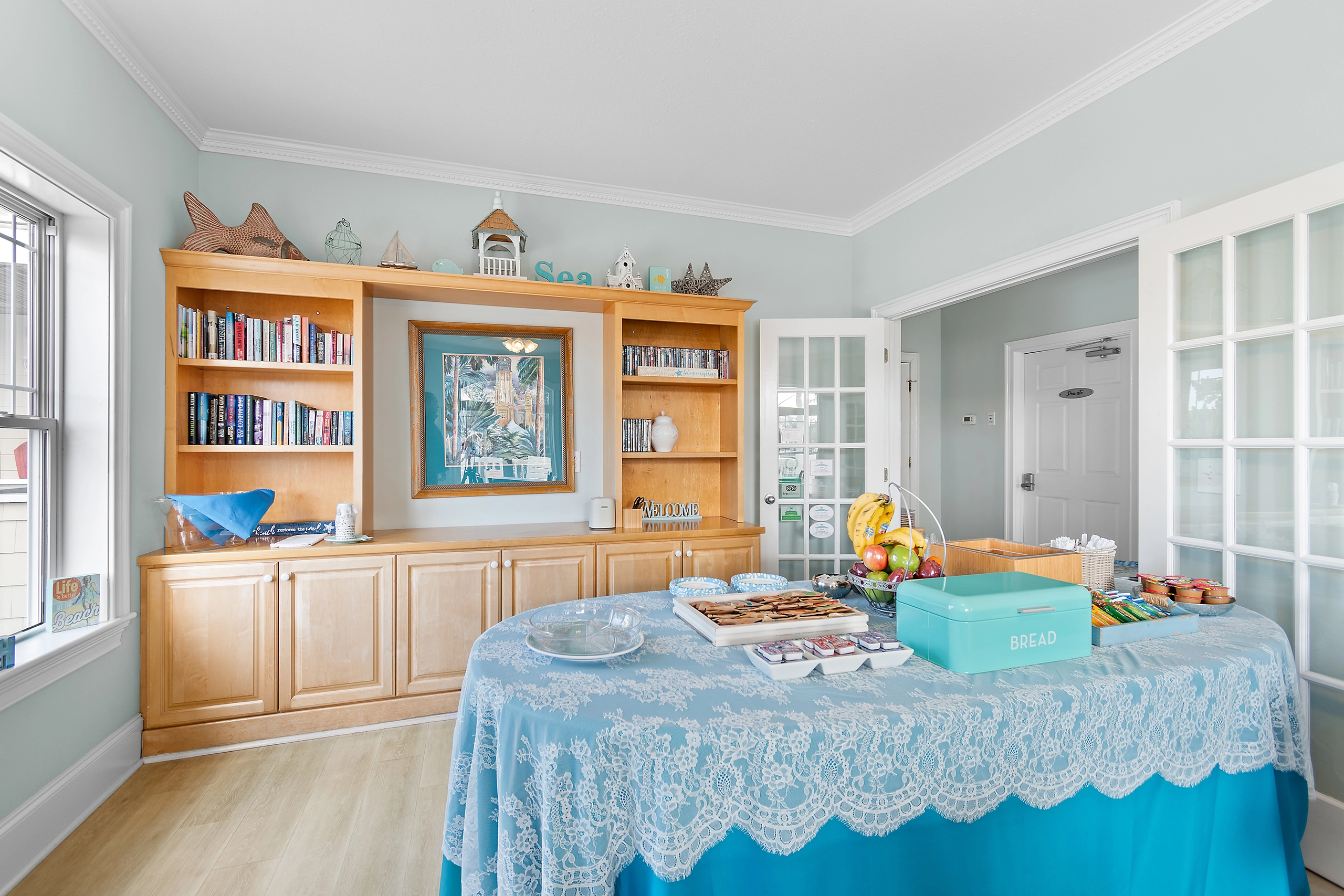 You’re on an island, so there are no formalities here. Load up your tray with goodies to start your day. Choose your dining location whether it is our cozy dining area, the quaint privacy of your screened porch, or one of the spacious front porches. Â
